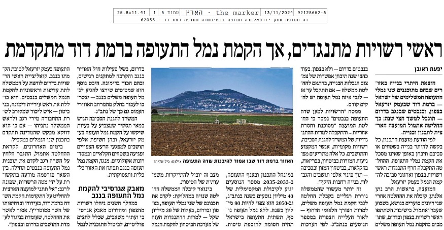 למרות התנגדות מצפון ומדרום: המועצה הארצית לתכנון ובנייה מקדמת שדה תעופה ברמת דוד | דבר - לקריאת הכתבה לחצו כאן