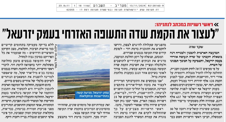 אחרי המכתב החריף מהרשויות: הקמת שדה התעופה בעמק יזרעאל תימשך | מעריב online - לקריאת הכתבה לחצו כאן