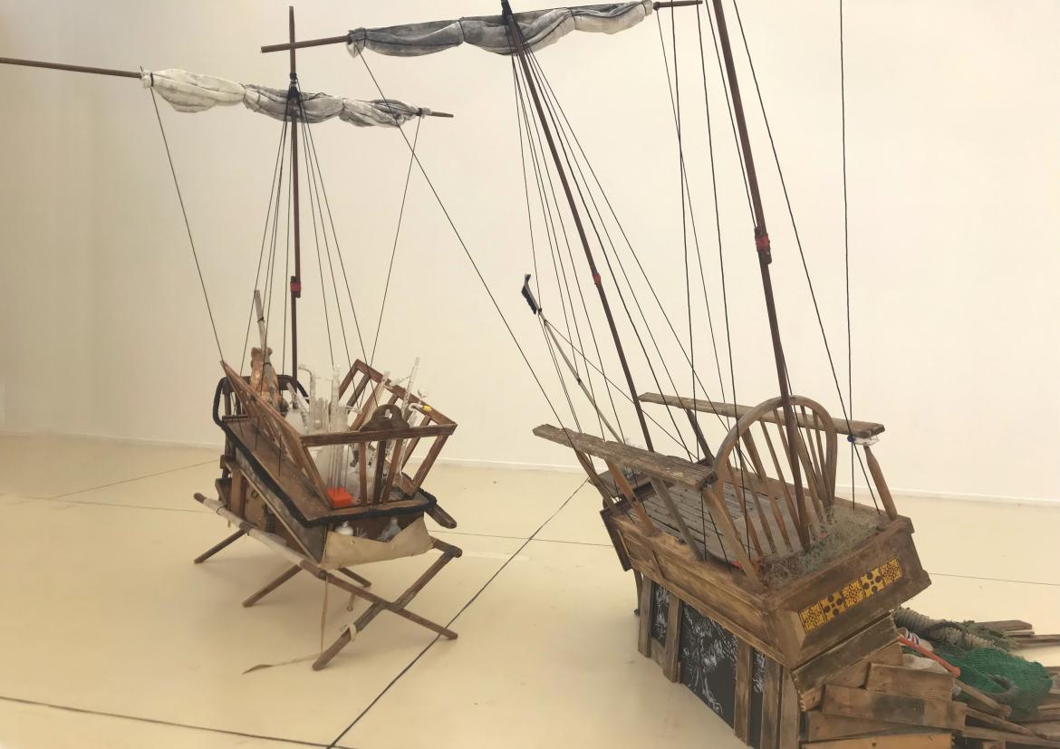 במרכז התערוכה, עומדות שתי סירות טרופות, שמקרביהן נשפכים חפצים ומזכרות והן עדות דוממת, לשקט ולוודאות המרגיעה שאחרי סערת החרדות. מסביב, נופים טרופים ושברי סערה, כתמי מים ואקוורל שזלגו והותירו חותם, וגם חיפוש אחרי הכדור הנכון - כזה שנותן הרופא, או כזה שמציע האקדח?!